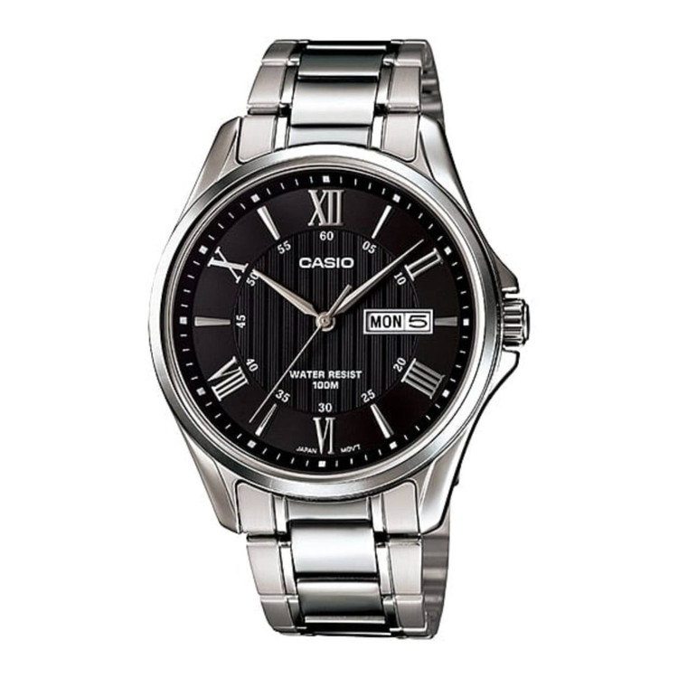 ساعت مچی مردانه کاسیو مدل CASIO MTP-1384D-1AVDF با طراحی ساده و کاربردی، برای استفاده روزمره ایدهآل است. این ساعت دارای نمایشگر روز و تاریخ، مقاومت در برابر آب تا عمق ۱۰۰ متر و بند استیل ضدزنگ است.
